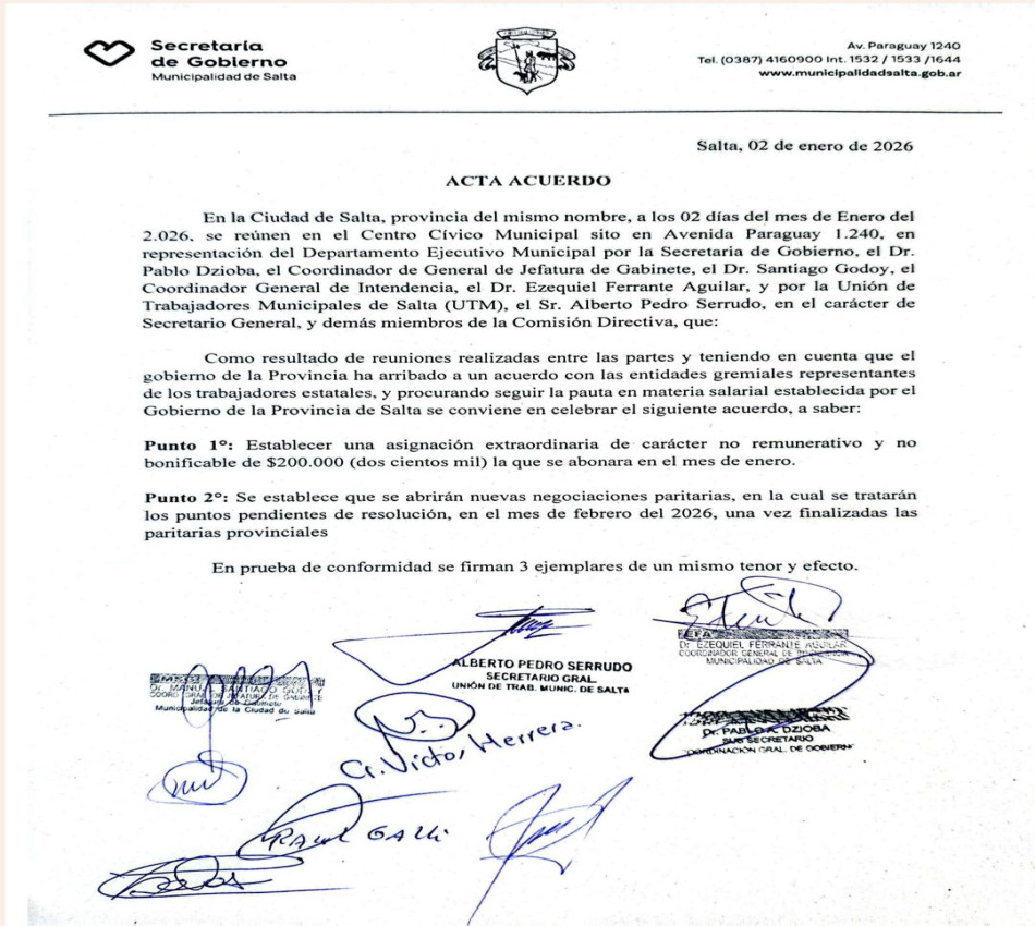 Nuestro Secretario General Pedro Serrudo acaba de firmar un Acta Acuerdo en el marco de la reunión paritaria convocada por el Ejecutivo Municipal